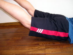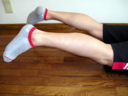 - 足をしっかり伸ばしたまま、ふとももが床から離れるまでしっかり上げてください。